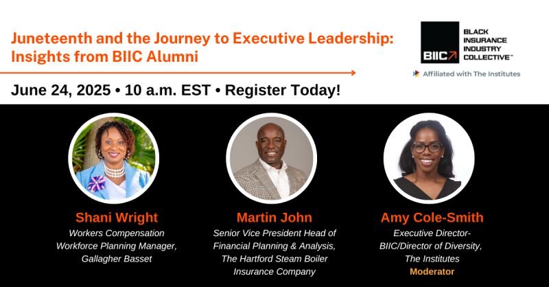 The Black Insurance Industry Collective (BIIC) has developed three cohorts of its Executive Leadership Program, created to support the advancement of risk management and insurance leaders and provide space to explore the mental, psychological, and cultural dimensions of leadership. In celebration of Juneteenth, BIIC invites you to join a powerful conversation with program alumni, trailblazing leaders shaping the future of the insurance industry. Through stories of growth, purpose, and empowerment, they’ll share what it means to lead and how they’ve navigated the path to executive leadership. This discussion will offer real-world insights for those looking to elevate their careers and lead with impact.